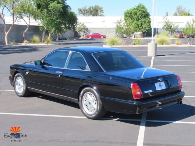 1998 Bentley Continental R Coupe, 385hp 6.75L Turbo V8, Special Edition #8 of 10. We are pleased to present this incredibly rare 1998 Bentley Continental R Special Edition. Marking #8 out of 10 examples produced in total, this Special Edition 1998 Continental R is said to have been purchased new at an original MSRP of over $338k from the authorized Bentley dealership EuroMotorcars of Bethesda, Maryland. Specific to this example is the “flying-B” grille ornament which is said to have been custom ordered from the factory as a personal wish from the original owner prior to delivery. Reported to have been under the care of only 2 private owners from new, this highly collectible Continental R is now being offered by Canyon State Classics in Arizona while showing approximately 60k miles, accompanied by original books and a clean title. Having recently undergone a professional full detail and paint correction, the Black finish on this Bentley is said to be in very nice overall condition except for a couple of minor touchups located on the passenger mirror cover (detailed images are provided in the photo gallery). The front bumper was recently refinished for cosmetic purposes and the seller notes that some other panels had been previously refinished including the driver’s side door. The original purchaser of the car is said to have contacted Bentley in England to commission the creation and installation of the raised “flying-B” grille ornament, a feature unseen on any other Special Edition Continental R. Characteristic details of this example include its stainless-steel oval tailpipes, body-colored headlight surrounds and bumpers, front wing vents, and 18” Continental T wheels. Inside, the cabin is appointed in fine Connolly leather, wool carpeting, and dark wood trim. The interior is described by the seller to be in immaculate condition while retaining full functionality of all gauges and accessories including the upgraded Kenwood audio system. The Continental R Special Edition is designated as such on the original window sticker by having the $19,556 Mulliner Park Ward option, which adds the following details: 6-Gauge Console Instruments w/ Turbo Boost Gauge Stainless Steel Gear Shift Lever Drilled Brake and Accelerator Pedal Red Starter Button Adjacent to Key Chrome Gauge Bezels Sport Mode Switch on Fascia Trim Panel Complete Steering Wheel Trimmed in Black This Continental R is equipped with a 6.75 L turbocharged V8 engine rated at 384 HP and 553 lb.-ft of torque. A 4-speed automatic transmission sends power to the rear wheels providing for effortless cruising and a 0-60 time of approximately 6 seconds.