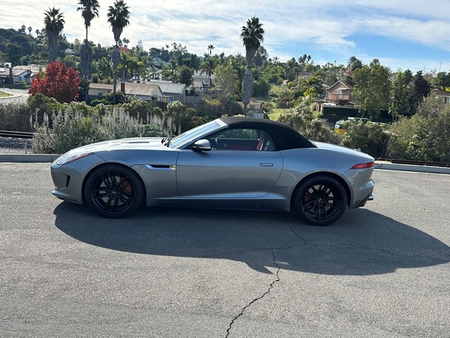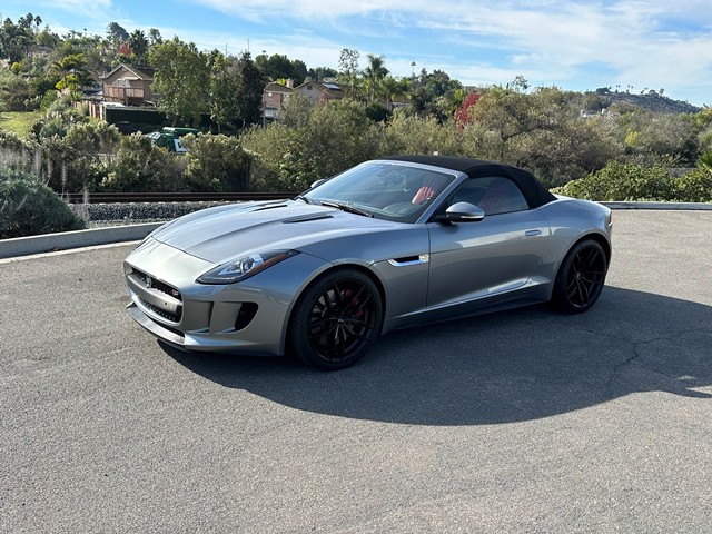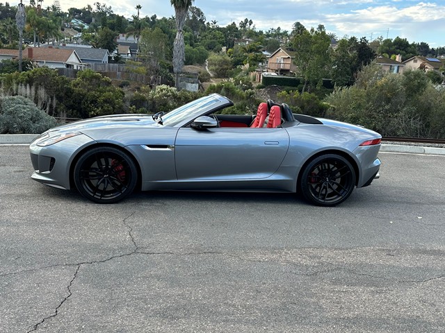 “This 2014 Jaguar F-Type S Convertible is a highly optioned example finished in Metallic Gray with carbon-fiber patterned accents and a striking red leather interior with diamond stitching. Conceived as a modern interpretation of Jaguar’s iconic E-Type, the F-Type was designed under Jaguar design director Ian Callum, whose prior work at Aston Martin helped shape its sculpted proportions and performance-focused styling. Power is provided by Jaguar’s 5.0-liter supercharged V8 producing 495 horsepower and 460 lb-ft of torque, paired with a ZF 8-speed paddle-shift automatic transmission. Performance is brisk, with 0–60 mph acceleration in approximately 3.8 seconds. Built on Jaguar’s lightweight aluminum body and chassis, the F-Type S offers an excellent balance of performance and rigidity. Factory equipment includes the Super Performance Braking System, electronically controlled rear differential, quad exhaust outlets, 14-way power sport seats, heated seats and steering wheel, dual-zone climate control, blind-spot monitoring, adaptive Bi-Xenon headlamps with LED daytime running lights, and front and rear parking sensors with a rearview camera. Additional features include black exterior trim, aerodynamic accents, power- folding heated mirrors, a wind deflector, garage door opener, and a lockable interior storage compartment. The car rides on 20-inch Niche alloy wheels with brand-new Michelin Pilot performance tires and has recently passed California smog inspection. Well maintained and attractively equipped, this F-Type S Convertible is a standout modern Jaguar performance car.”