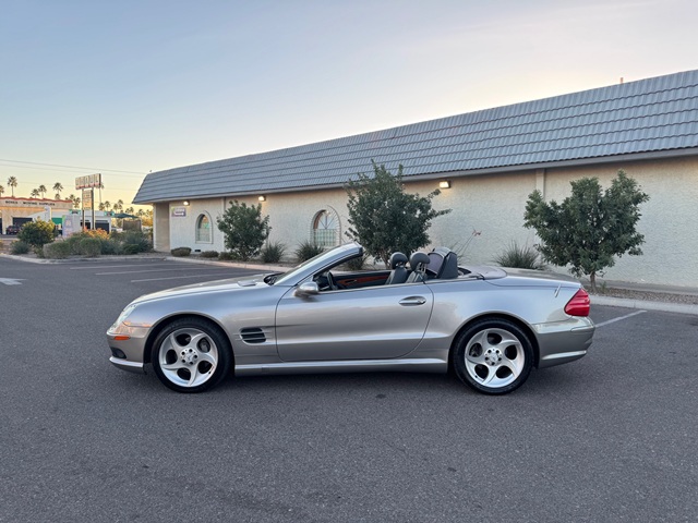This 2005 Mercedes Benz sl500 is powered by a 5.0 liter v8 engine producing 302 horsepower backed by a shiftable automatic transmission. Features include. AMG body styling sport package . premium leather interior. Power bucket seats . Power convertible hard top . Bose premium sound . Adjustable suspension. Leather steering wheel with controls. Wood grain interior accents. Convenience package . Comfort package. Only 75000 actual miles . Original MSRP of over $95000.00 and rides on a set of Mercedes premium alloy wheels and tires .