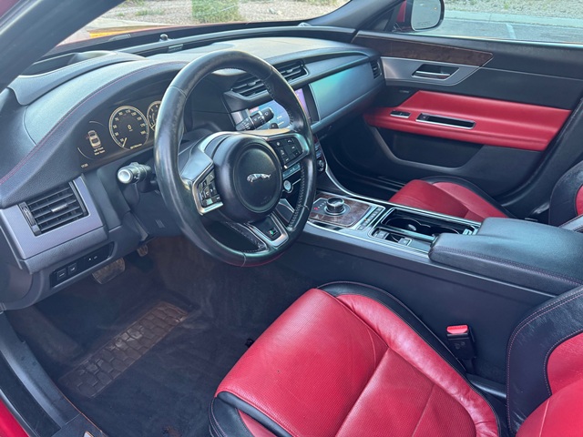 This 2017 jaguar xf is powered by a 3.0 liter supercharged engine producing 340 horsepower backed by a 8 speed automatic transmission. Features include 2 tone premium leather interior . Power bucket seats . R series sport package . In dash touch screen with premium sound system . Power sunroof . Leather steering wheel with controls . Convinince package . Comfort package. And rides on a set of jaguar premium alloy wheels and tires .