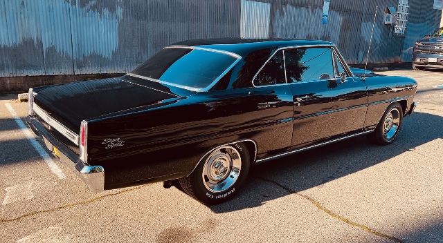 1967 Chevy Il Nova - SBC 377 Stroker (De-stroked 406)Engine, Brodix Polished Aluminum Heads, Edelbrock Super Victor High-Rise Intake Quik Fuel 750cfm Double Pumper Carb, MSD Electronic Ignition System, Moroso Custom Deep Oil Pan, Borg Warner 6 Speed Transmission, Close Ratio Hurst Shifter, New Front Disc Brakes, New Ball Joints and Bushings, New Front Shocks, New Monroe Adjustable Rear Air Shocks, Custom H Pipe Exhaust w/ Flowmasters Frame Connectors and Traction Bars, 12 Bolt Posi-Traction Rear End, Dakota Digital Dash Gauges, Procar Custom Bucket Seats & 15" Rally Wheels w/ New BFG Radial T/As