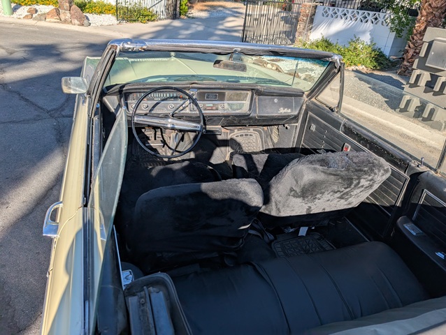 Mostly unrestored condition but maintained as needed. Has had regular tune ups and oil changes. Transmission rebuilt 10 years ago. Repainted original color 30 years ago. Local daily driver, same owner since 1987. Has appeared in several local photo shoots and The Desert Storm Veterans parade. In April 2003 2023 the car was included in 'Cruisin Through The Years' Palm Springs parade. The horn, turn signals, e brake, gas gauge and odometer do not work and power windows work sometimes.