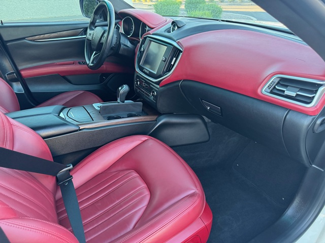 This 2016 Maserati Ghibli is powered by a 3.0 liter turbo charged engine producing 404 horsepower with 406 ft lbs of torque and backed by a 8 speed shiftable automatic transmission. Features include hard to find red leather interior. Power heated bucked seats. Sport package . In dash touch screen . Leather steering wheel with controls . 8 speaker premium sound . Convenience package . Comfort package . Only 57300 actual miles. Original MSRP of over $80000.00 and rides on a set of premium alloy wheels and tires .