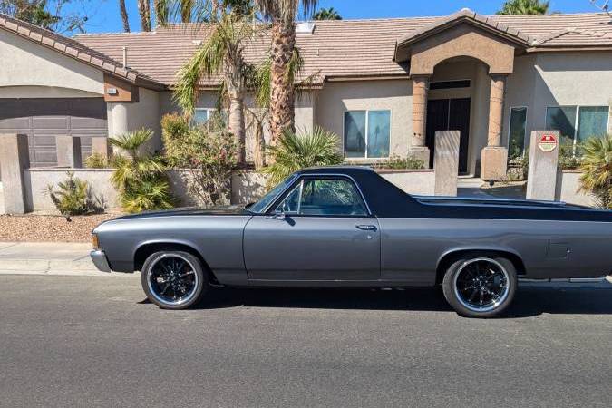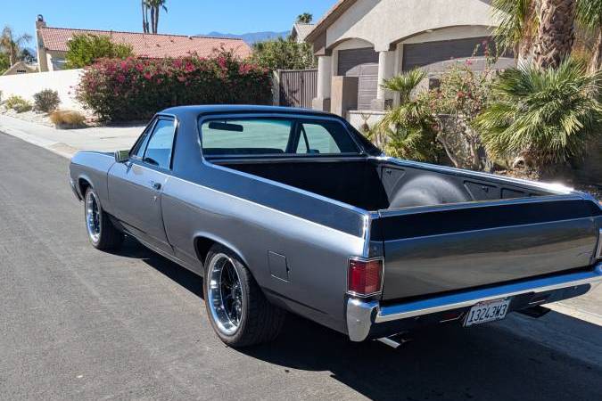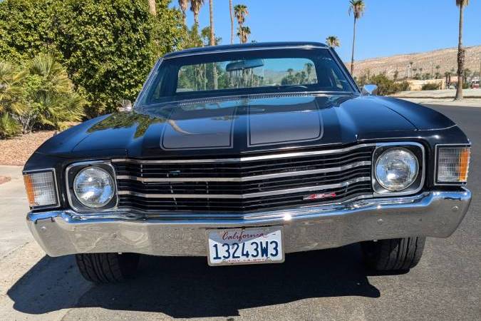 custom big block '72 El Camino. Bought by previous owner at the 2021 Mecum Dallas auction for 25k and brought back to the Palm Springs area where another 55K ( I have receipts) was invested in engine, trans, suspension , AC/heat and other upgrades to include : Edelbrock aluminum roller rocker heads, long tube ceramic headers & flowmasters, comp cam, carb + much more. Turbo 400 trans with shift kit and stall converter, etc. Complete rebuilt front end with tubular A arms, front & rear high end KYB shocks and stabilizers. Original AC car upgraded to Vintage air & heat with dual Derale electric fans on aluminum radiator. Nitto 235/40-18 fronts and 275/40-18 rear radials on 18x8 and 18x10 American Racing ten spoke rims. New fresh black with grey accented interior, Sony sound system with Bluetooth and tuner, Momo steering wheel, and retains the original AC/Heat vents. The bed is Rhino lined plus has a custom rubber mat. There is no known rust or rust repair There's to much more to list about this eye catching, fast 454 El Camino with less than 1,500 documented miles since built plus receipts for a total of over 80k invested to date.