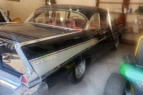 Very nice original 1957 chevy, with a rebuilt 350 engine with a newly rebuilt 400 turbo transmission, original black car from reno nevada