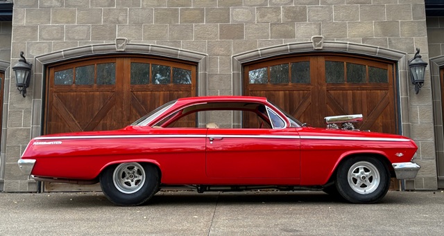 SPECIFICATIONS: ENGINE 468/850 HP V-8 TRANSMISSION Automatic EXTERIOR COLOR Ferrari Red INTERIOR COLOR Tan/Red MAKE Chevrolet MODEL Bel Air BODY STYLE Bubble Top HIGHLIGHTS: Frame-off restoration Finished in custom Ferrari Red Featured in Super Chevy magazine Chassis built by John's Racecraft in Brockton, Massachusetts Fresh Extreme Automotive 468 CI V-8 engine Dual Edelbrock 600 CFM carburetors B&M supercharger High-performance Turbo 400 transmission with reverse manual valve body 3500 RPM stall converter 4-link rear end with 4.30 gears Power steering and brakes EQUIPMENT: Custom dual exhaust Leather upholstery with custom ostrich inserts Custom wheel setup with Chevrolet cross flag center caps Mark Williams axles 4-wheel disc brakes Sony stereo with amplifiers, speakers and a Pioneer stereo system custom