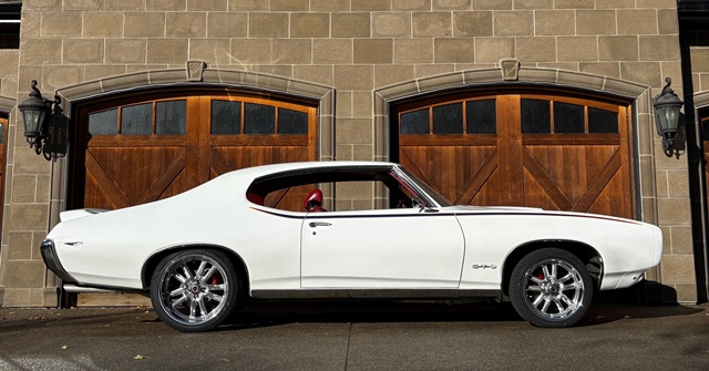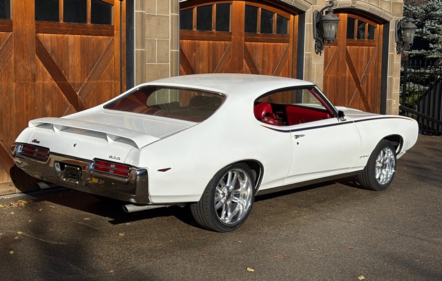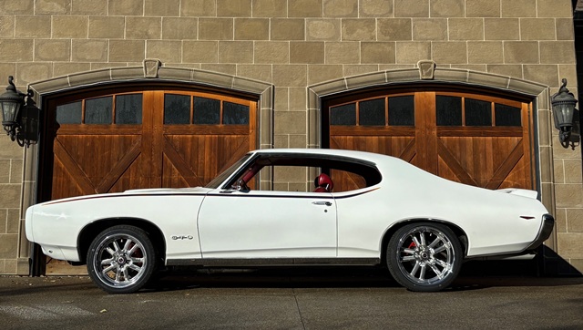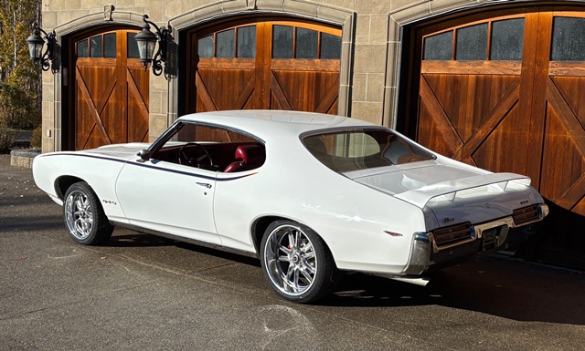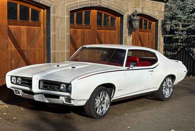SPECIFICATIONS: ENGINE 5.7L V-8 TRANSMISSION 5-Speed Manual EXTERIOR COLOR White INTERIOR COLOR Red MAKE Pontiac MODEL GTO TRIM/SUBMODEL Pro Touring BODY STYLE Coupe HIGHLIGHTS: Frame-off restoration completed over three years Fuel-injected 5.7L LS V-8 engine Tremec 5-speed transmission Restored interior Factory bucket seats and console Hotchkis suspension Flowmaster 2 1/2-inch dual exhaust 4-wheel disc brakes Power windows Power steering EQUIPMENT: SFI Bellhousing Edelbrock trailing arms Aftermarket coilovers Custom AutoMeter gauges Custom 18 and 20-inch staggered wheels with custom PMD Center caps