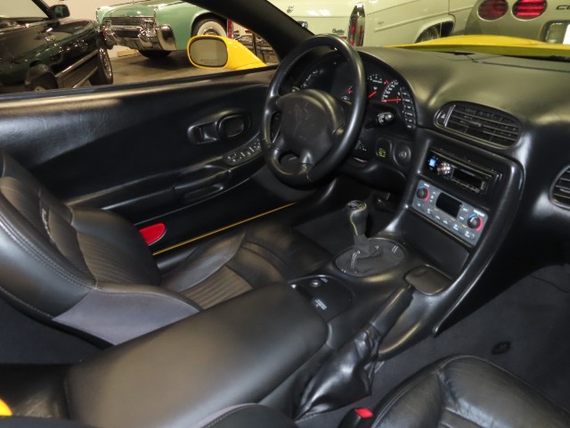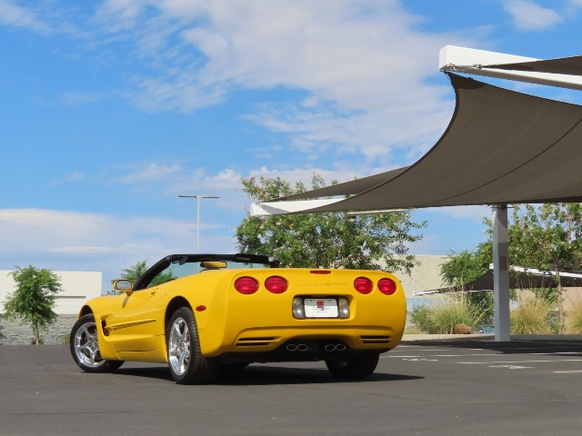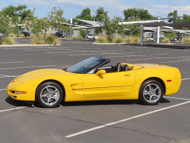 2002 C5 Corvette convertible in 79U Millennium Yellow over Black Leather. It's powered by an LS1 V8 engine mated to a T56 6-Speed manual transmission, delivering all 345hp to the back wheels. This car California and has been well cared for by it's enthusiast owners over the years. This is your chance to own a pre-owned 'Vette with all the look of a show car at a fraction of original cost. This car had an original MSRP of almost $55,000, so don't miss your chance to own this beauty for a fraction of the original sticker. The following is a list of options as this C5 is currently equipped: -Base MSRP $48205 [MN6] 6 Speed Manual Transmission W/5 TH & 6 TH Gear Od 3.42 axle ratio $915 [1SC] Preferred Equipment Group 2 $2,650 [AQ9] Adjustable Sport Bucket Seats included [EXTRA] Extra Cost Paint $600 [QF5] 5 Spoke High Polished Aluminum Wheels $1,295 [V49] Front License Plate Frame $15 [B84] Body Side Moldings $150 [Z51] Performance Handling PKG with pwr steering cooler, stiffer springs & stabilizer bars $395 The body on this Vette is in good condition overall. The car is finished in Millennium Yellow with a black canvas top. The top is in excellent condition with a clear window and very few signs of wear. The drop top was just put through our detail dept for a full cut, buff and coat of wax. The body is all arrow straight and this car is Carfax and Autocheck certified to have never been in an accident. All four chrome wheels are near perfect with no damage and are wrapped in Falken performance radials. The interior is in great shape all around and highly optioned. The Black leather is all very nice and shows very little ware for its age. This car came loaded with adjustable sport seats, dual-zone air conditioning, 6-way pwr passenger seat, fog lamps, memory pkg, leather-wrapped tilt steering wheel w/ pwr telecscoping column, heads-up display, twilight sentinel, electrochromic rearview/ driver-side mirrors. Examine the center console closer to find this C5 equipped with optional Z51 Performance Handling Pkg. The fit and finish of the interior are a testament to how well it has been looked after! Mechanically, this Vette runs great. I can't describe how nice this car drives. It is extremely smooth and luxurious, but with the stomp of your foot you unleash all the power of the big LS1. The highlight of this car is what lurks under the hood. The specially designed LS1 V8 puts out a whopping 345 horsepower. The motor provides ample power to move the car around and will smoke the tires if you are not careful. All correct accessories are in place and the motor has been completely detailed to original condition.