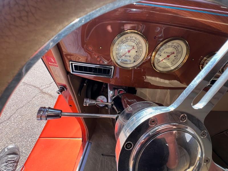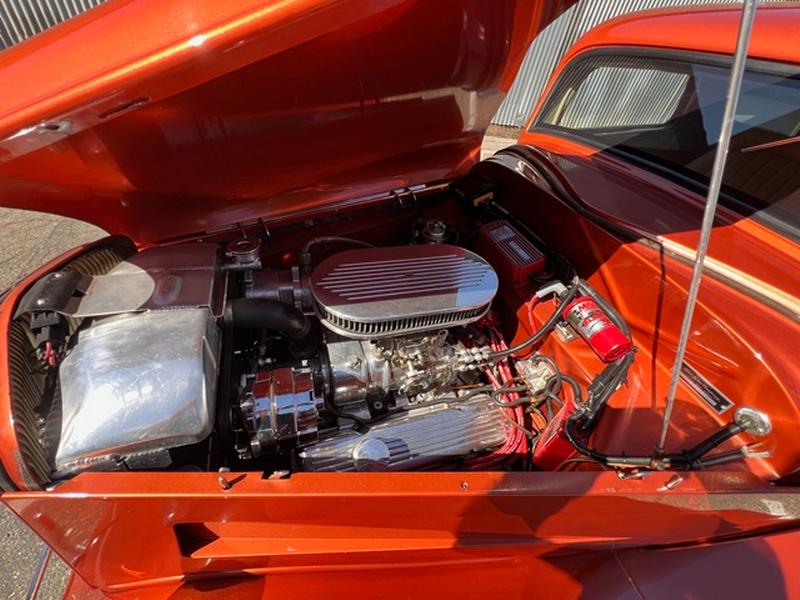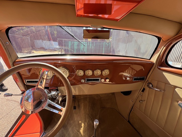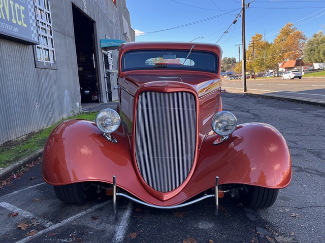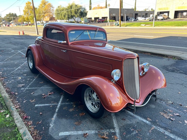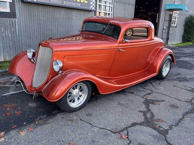 1934 Ford 3 Window Coupe - SBC 350ci Engine w/ B&M Blower 4bbl Carb, TCI TH350 Automatic Transmission, Ford 9 Inch Rear End, Four Link Setup in Rear, QA1 Coil-Over Shocks on all 4 Corners, Power Disc Brakes - Front, Heidts Independent Front Suspension, Rack and Pinion Steering, Chrome Tilt Column, Air Conditioning, Power Tinted Windows, Complete New Interior, Custom Pinstriping by DP Lineart, Dual H Pipe Exhaust, Polished Boyd's Rims w/ BF Goodrich Tires, Registered as 1934 Ford. Run With or Without Hood Sides, Nice Blaupunkt CD Stereo System Plus Much More...