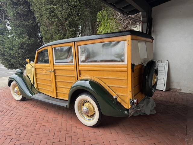 This 1935 Ford Model 48 Four Door Wagon aka “Studio Woody” is a restored ORIGINAL. Owned by a Surf film producer. It was his baby. All steel and pristine wood. The car features a period correct flat head V8 that is believed to be original. The car also has a 3 speed manual transmission, this is the Deluxe trim model which included chrome trim around the grill, windshield and horizontal side vents on the hood. Interior has been completely restored and has seating for many people for fun. The car runs and drives great and there are no signs of previous collision history. The serial number and data plate show that the vehicle is a true and fair representation of the 1935 Ford Woody Wagon.
